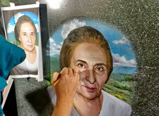 Далее этот же мастер окрашивает портрет и покрывает лаком.