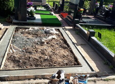 Сначала мы разобрали всё, что было на могиле: демонтировали памятник, сняли гранитный цоколь, разломали бетон.